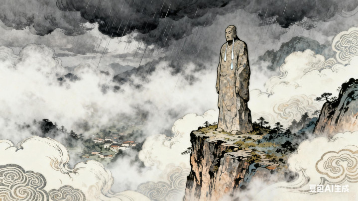 终南山断云崖上,立着个丈高的石人,天要下雨就流泪,你说这石头里裹的是活人魂,还是神仙的牵挂?